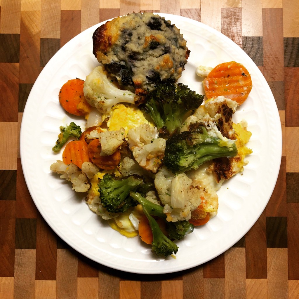 Here, I also have a no sugar, grain free, blueberry muffin from last night. This is seriously mostly blueberries, but is made with almond flour, eggs and chia seeds.