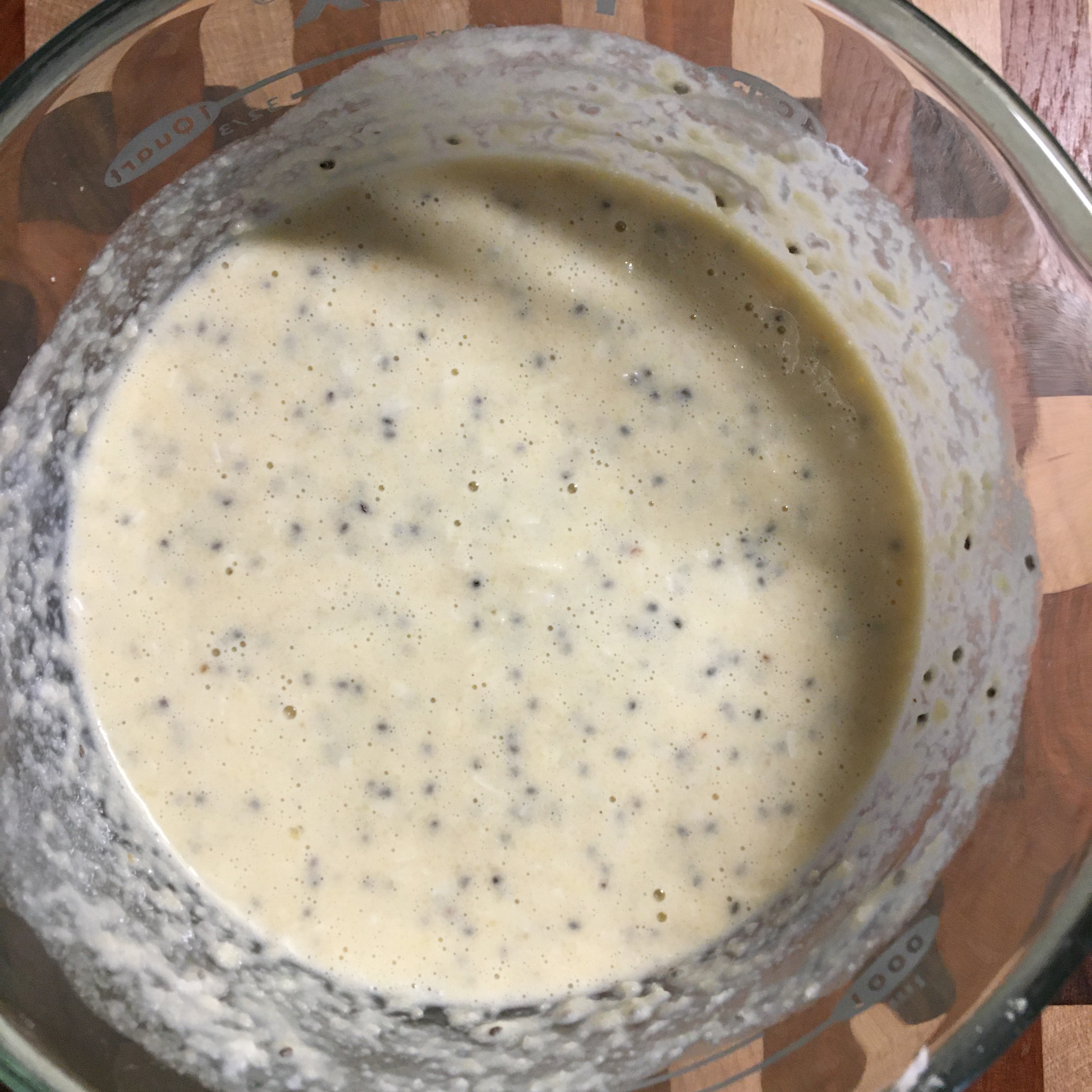 Mix eggs, milks, and chia seeds in a medium bowl. Add remaining ingredients and mix until all is combined.