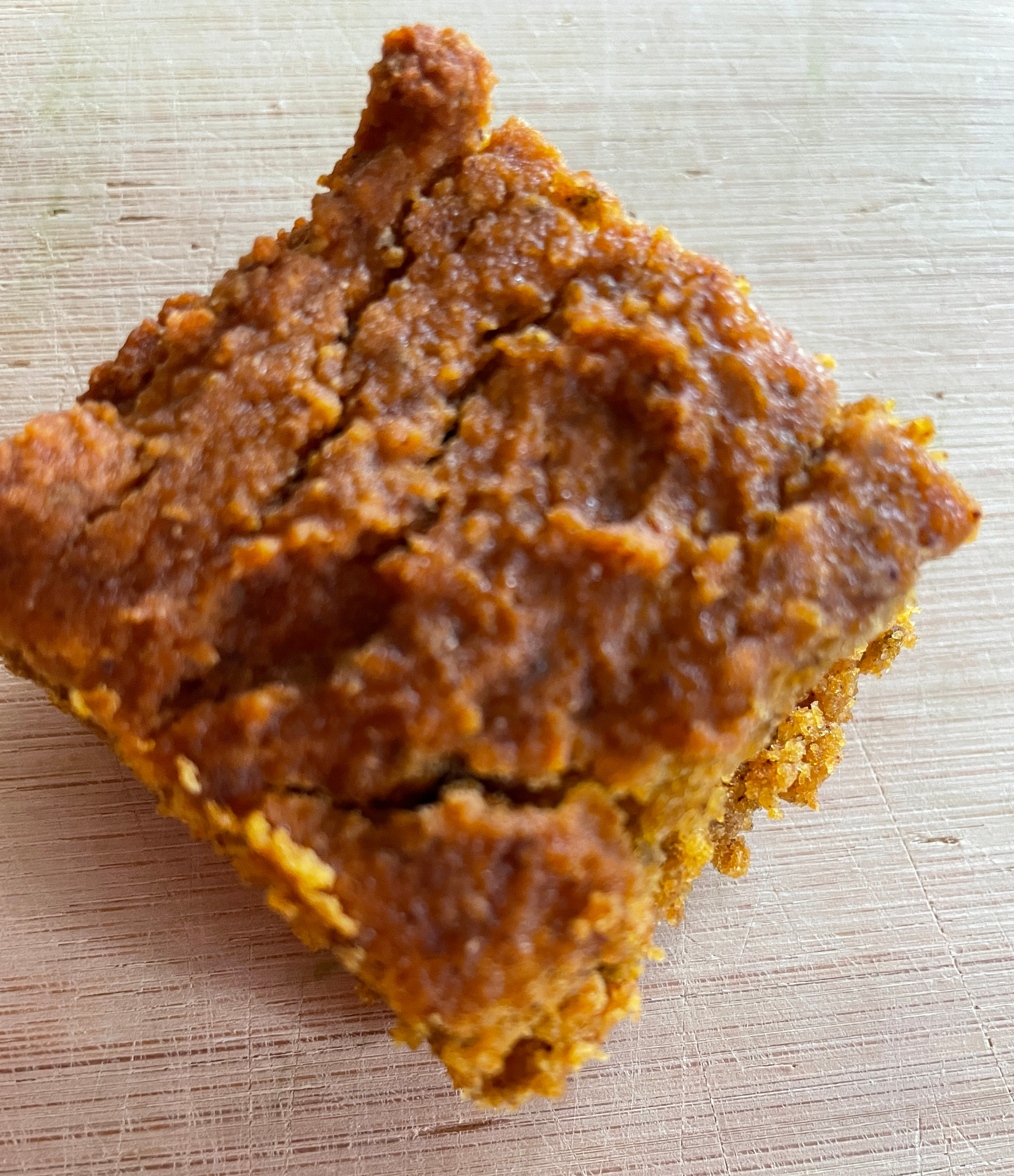 Line a glass 8″x8″ baking pan with parchment paper. Pour batter in pan and spread with spatula.