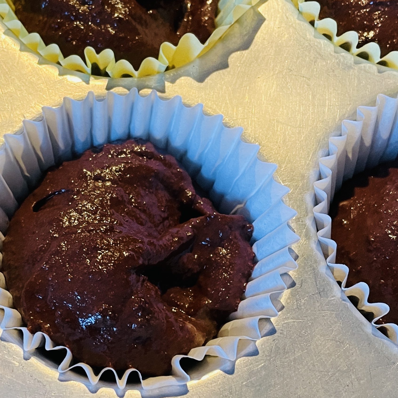 Line your muffin pan with parchment wrappers- makes 12 muffins